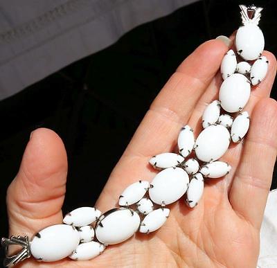 GORGEOUS CHUNKY VTG WEISS MILK GLASS RHINESTONE BRACELET! PL88