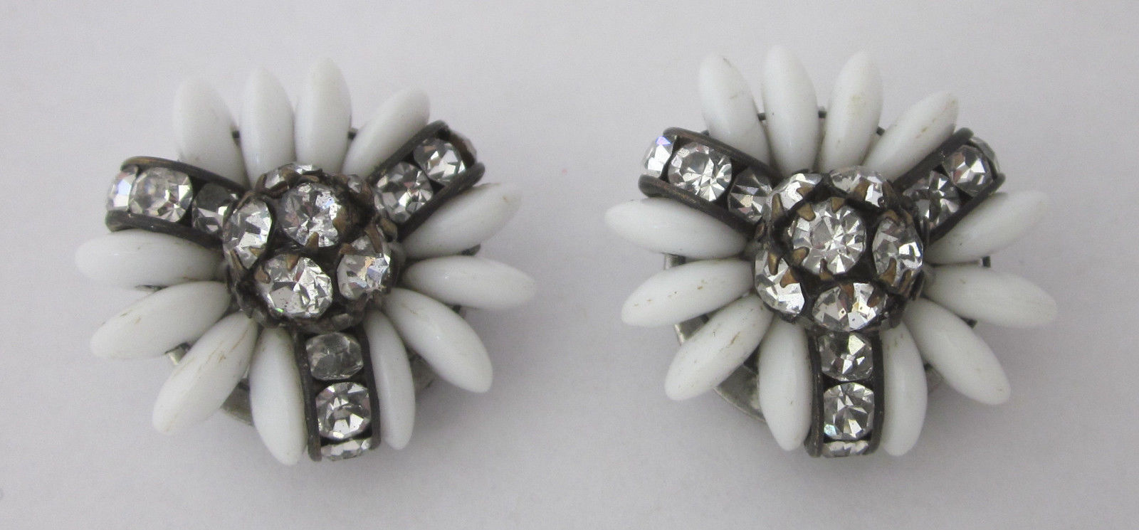 Vintage Milk Glass Bead/Rhinestone Rondelle Earrings