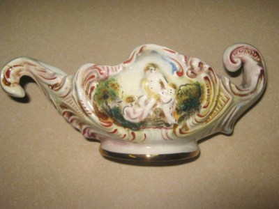 Antique Capodimonte Small Ornate Bowl with Cherubs