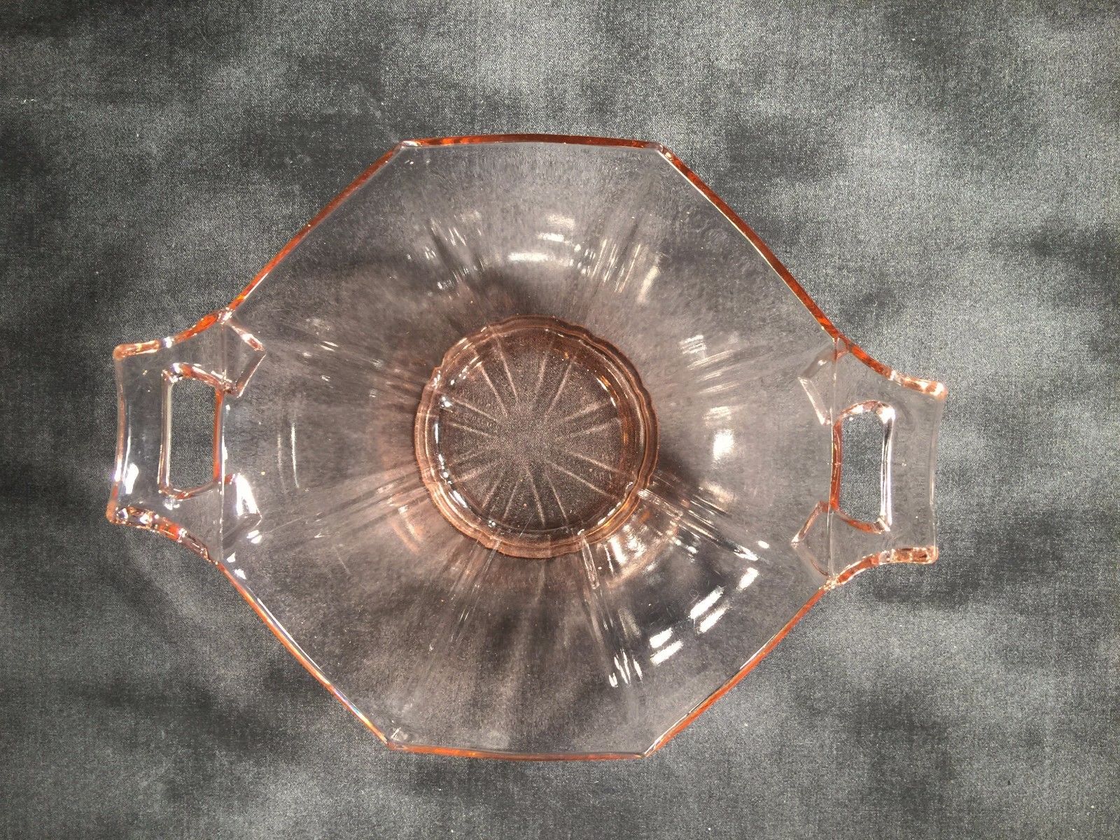 DEPRESSION ERA PINK VASELINE GLASS OCTAGON 6" HANDLED DESERT BOWL CAMBRIDGE