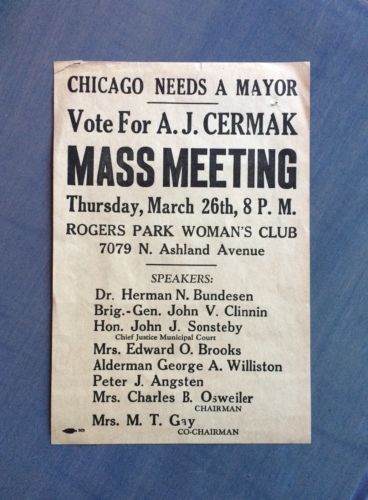 Title (ebay affiliate link): Anton Cermak Campaign Handout For Mayor Of Chicago....Killed While With FDR