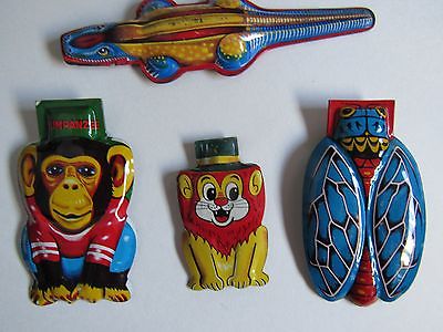 Vintage Tin Pressed Metal Animal Clickers Child Toy Alligator Lion Chimp Bug