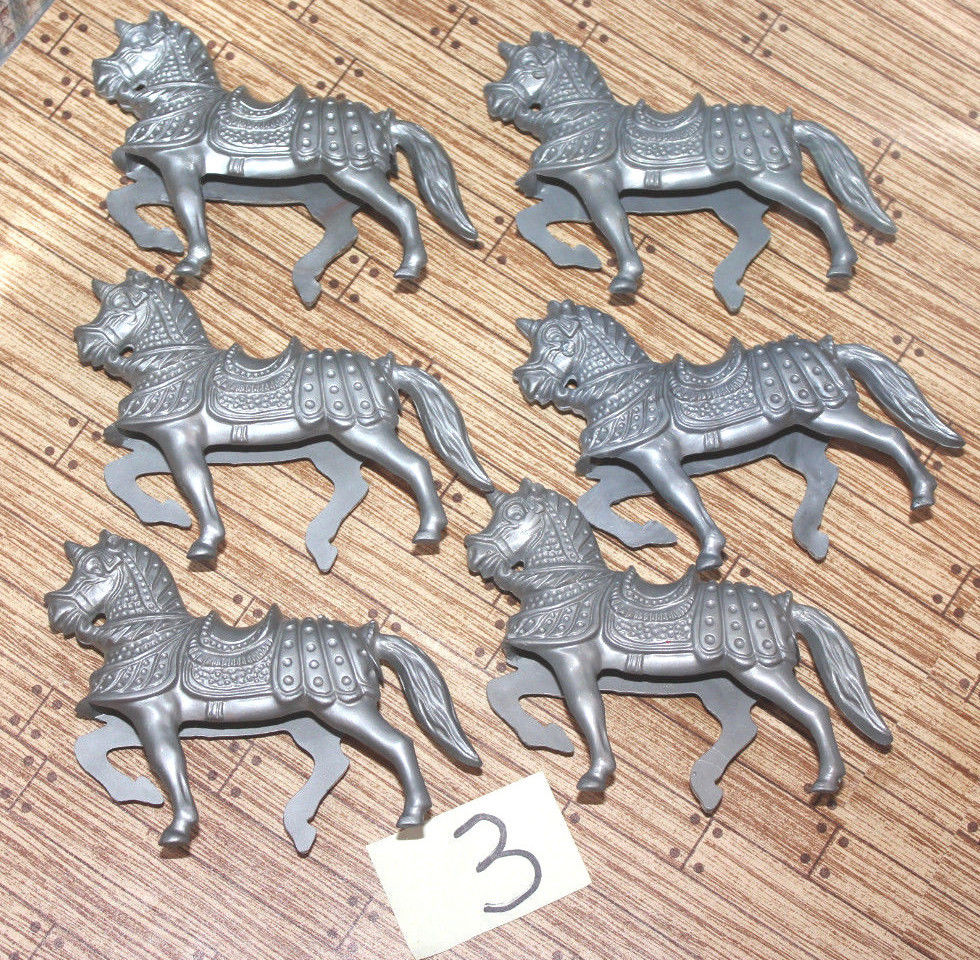lot of 6 54mm silver armored horses Lido knights hard plastic 1950''s antique
