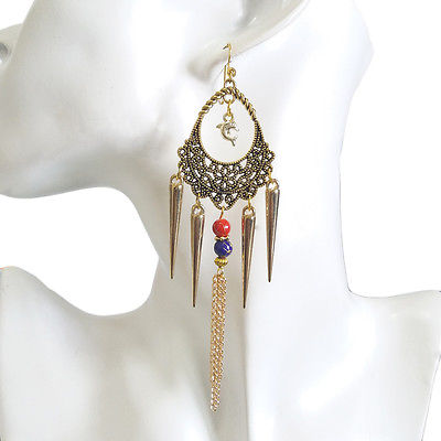Title (ebay affiliate link): Vintage Indiana Bohemian Antique Blue Red Beads Chains Dangle Drop Hook Earrings