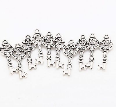 Free 15pcs Vintage Antique Silver Key Charms Pendant for Jewerly Making 9x26mm