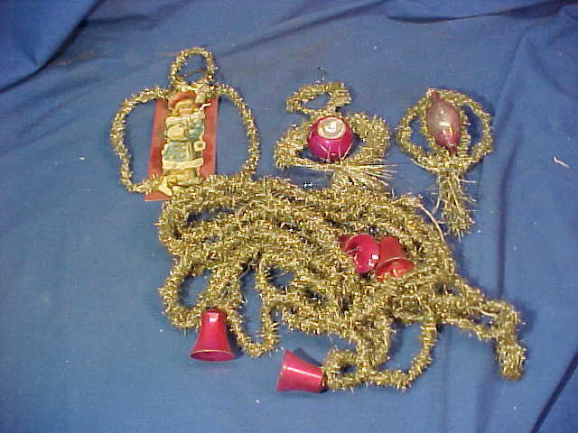 Title (ebay affiliate link): 4-Early 20thc CHRISTMAS TREE Czech TINSEL ORNAMENTS + 16'' GARLAND w GLASS BALLS