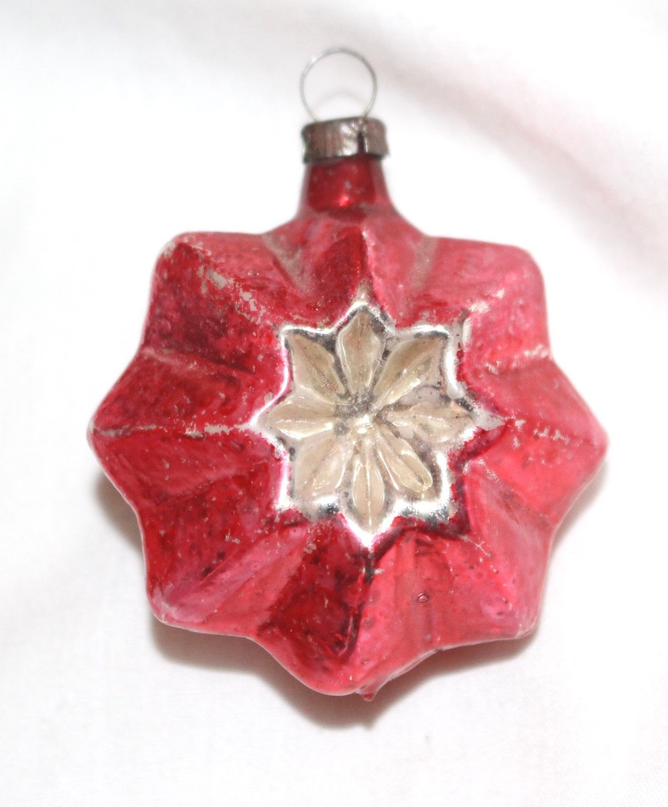Title (ebay affiliate link): Bright Red & Silver Indented Star Glass Ornament. 1920s, and created in Germany