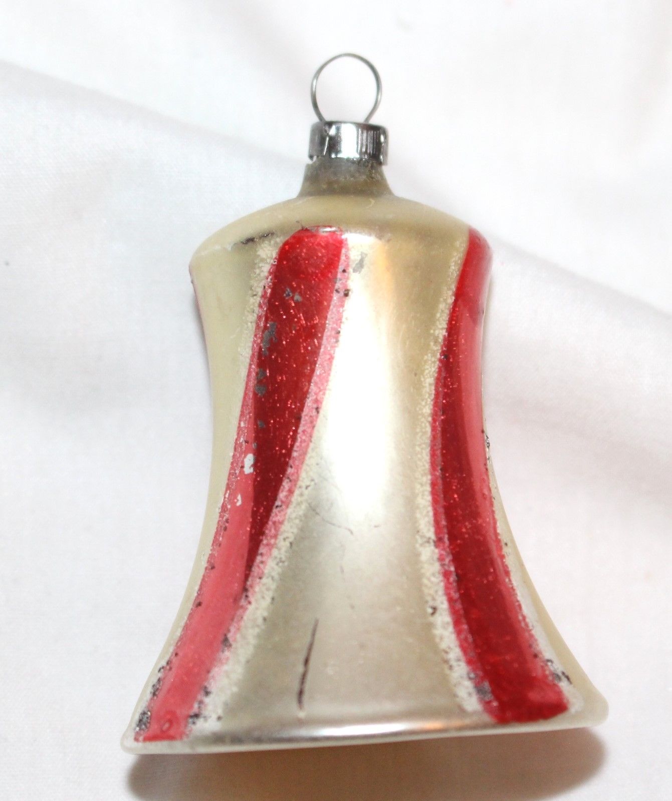 Title (ebay affiliate link): Red Striped, Pearl Glass Bell, with glass Clapper. 1920s German glass ornament.