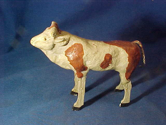 Early 20thc CHRISTMAS German PUTZ ANIMAL Hand Painted COW Figure 5"