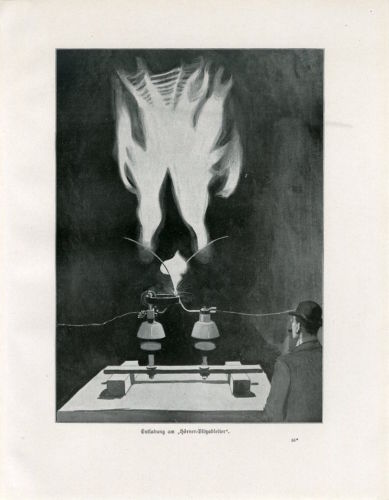 c1900 LIGHTNING RODS ELECTRIC DISGARGE Antique Litho Print W.Bolsche