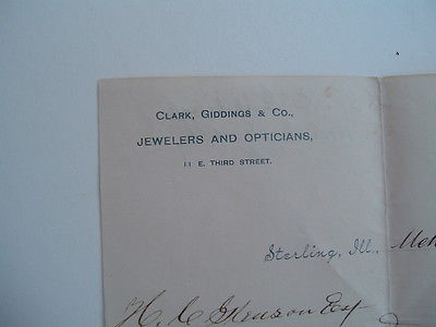1889 Sterling,Illinois/Clark,Giddings family,(Optician & Jeweler),Signed letter!
