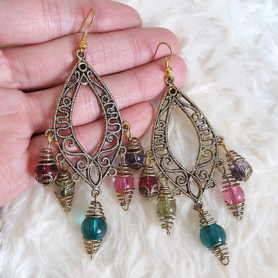 Title (ebay affiliate link): Vintage Womens Bohemian Boho Hippies Antique Clear Beads Dangle Hookie Earrings