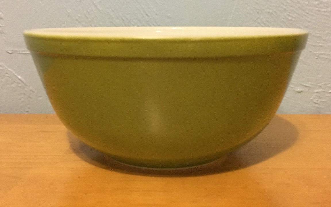 Title (ebay affiliate link): Vintage Pyrex Verde 403 Nesting Mixing Bowl Green Bowl Milk Glass Square Flowers