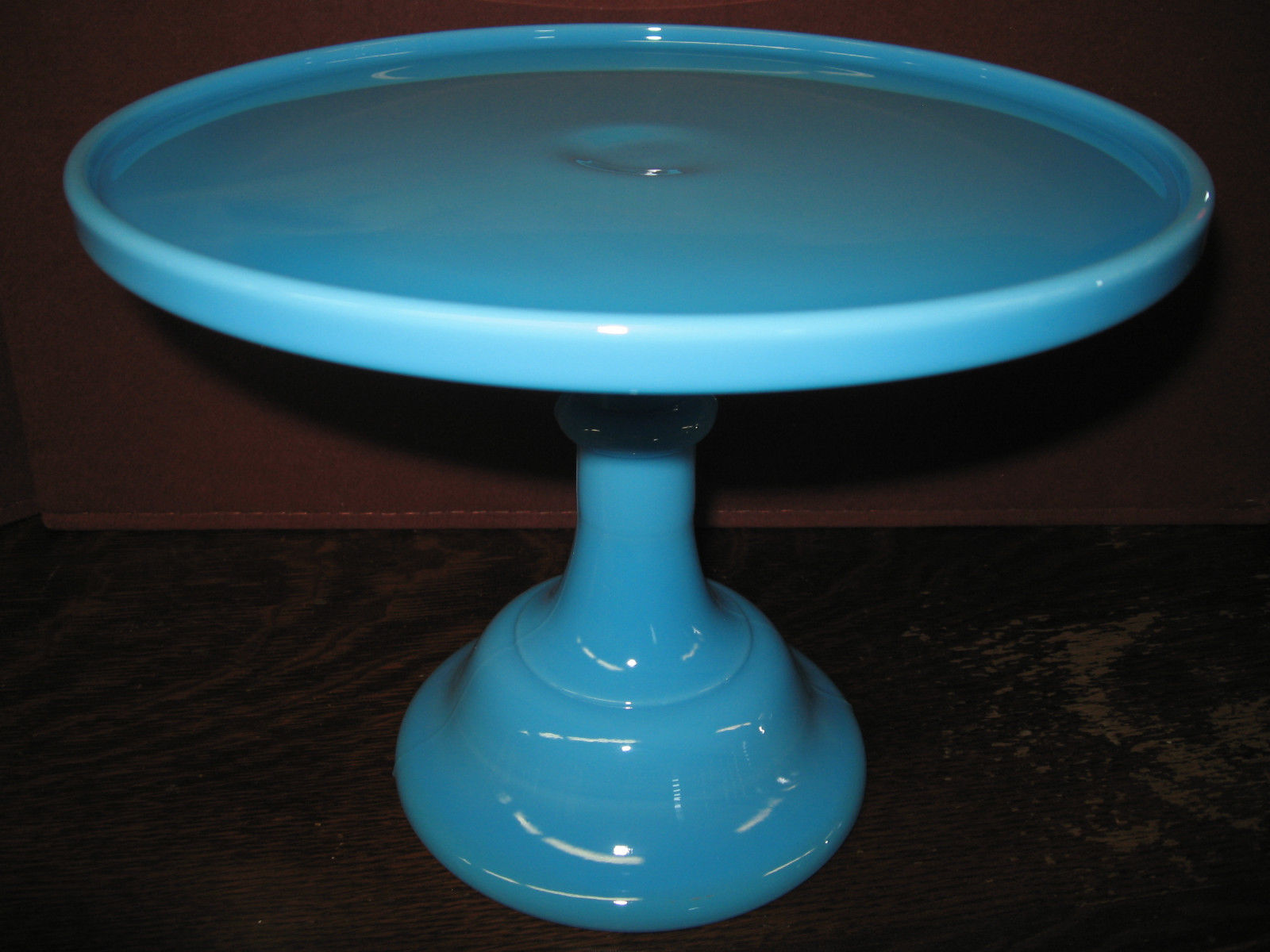 Title (ebay affiliate link): Blue milk Glass cake serving stand plate platter pedestal raised tray Bonnie art