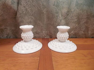 VTG PAIR OF WHITE MILK GLASS FENTON HOBNAIL PATTERN TAPER CANDLE HOLDERS 3 1/4"