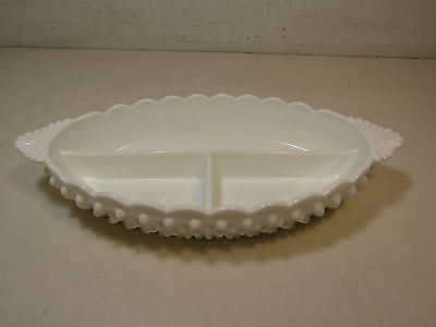 Title (ebay affiliate link): Fenton White Milk Glass Hobnail Oval Divided Serving Dish With Handles