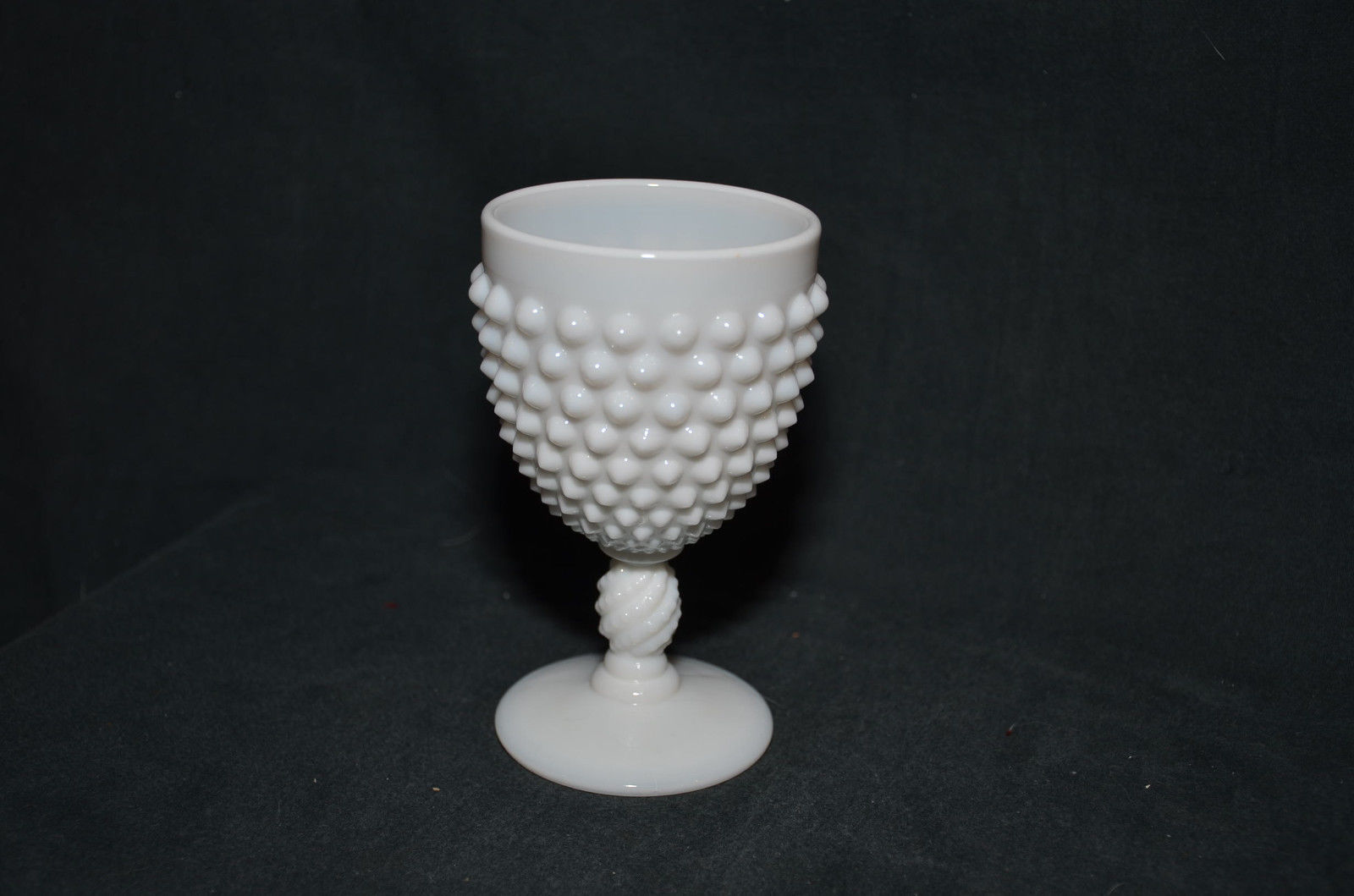 Vintage White Milk Glass Hobnail Pedestal Wine Goblet
