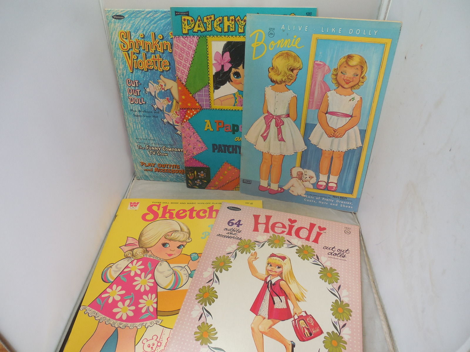 Title (ebay affiliate link): Lot of 5 Various Vintage Paper Doll Books- Patchy Annie, Shrinkin'' Violette, etc