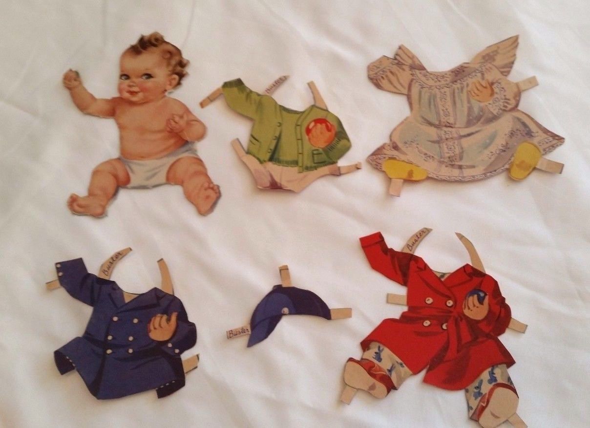 Title (ebay affiliate link): VINTAGE TODDLER PAPER DOLL~40-50''s~BUSTER~ 5 PIECES OF CLOTHING