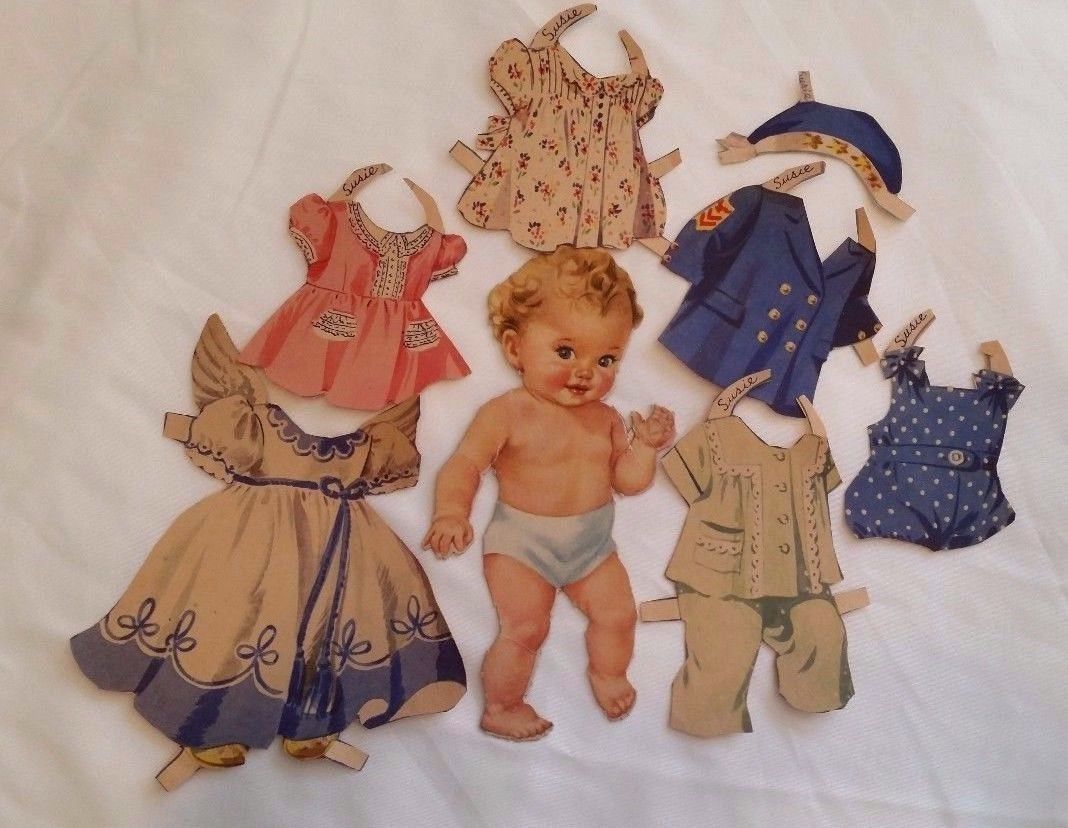 Title (ebay affiliate link): VINTAGE TODDLER PAPER DOLL~40-50''s~SUSIE~w/ 7 Pcs CLOTHING~