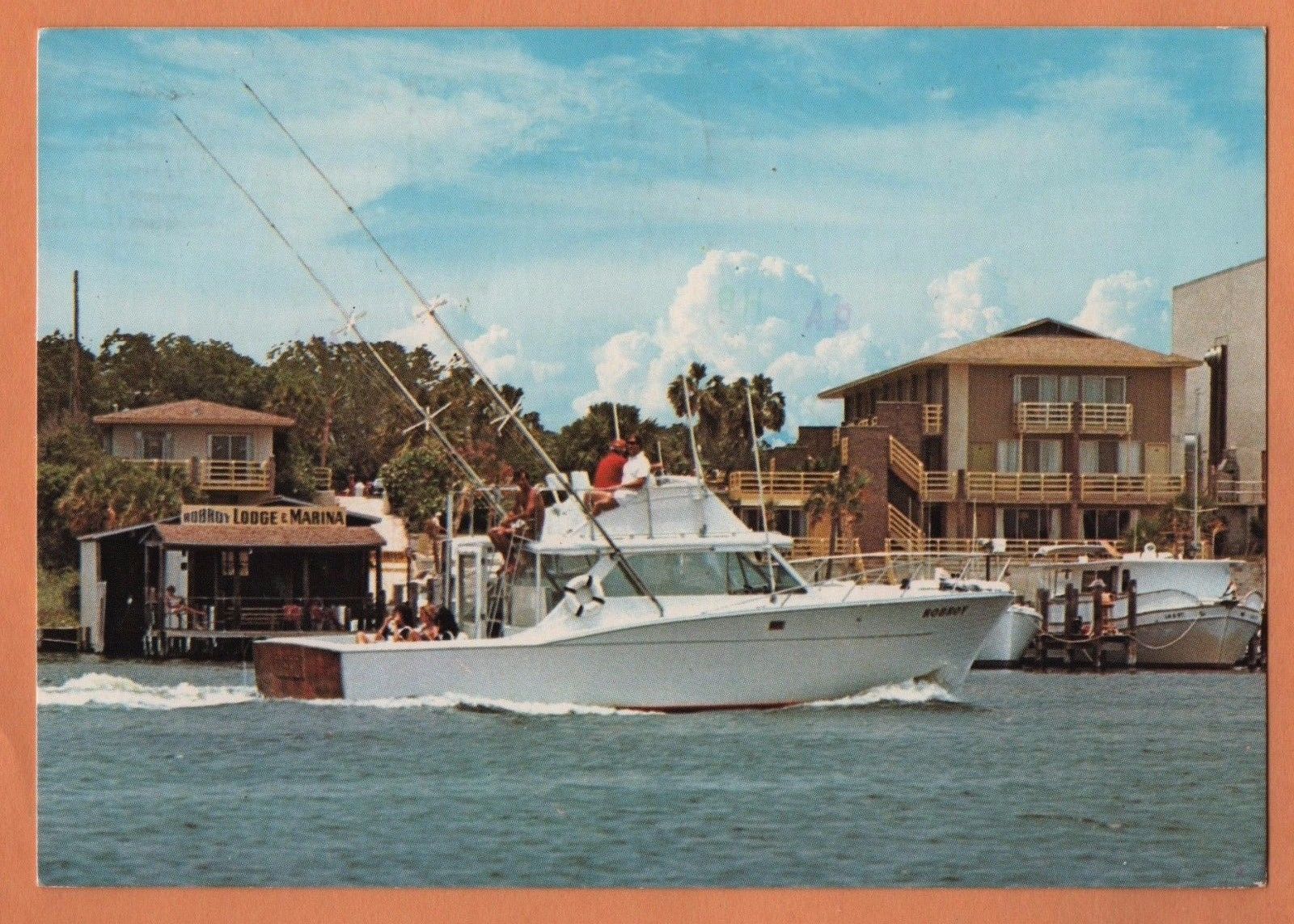FL Florida Destin Robroy Lodge & Marina Boat Yacht Okaloosa County Postcard