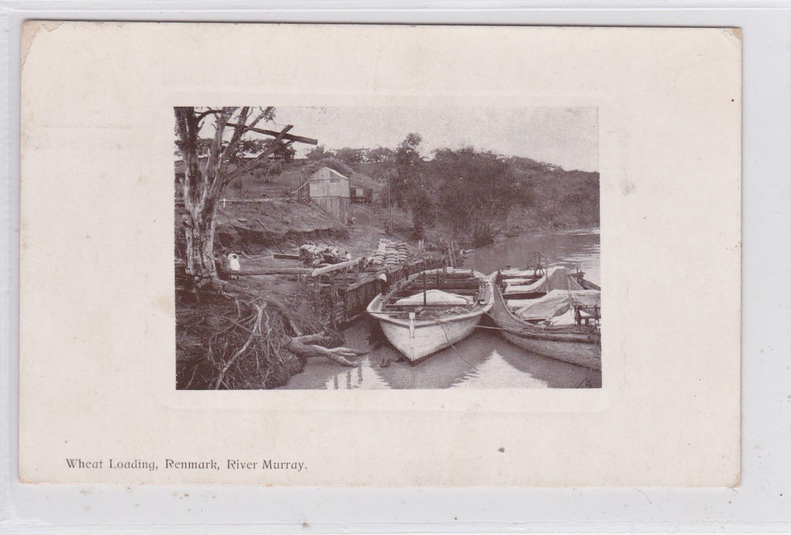 VINTAGE POSTCARD WHEAT LOADING AT RENMARK ON THE MURRAY S.A 1900s