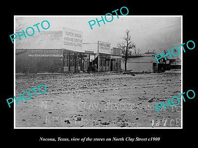 OLD LARGE HISTORIC PHOTO OF NOCONA TEXAS, VIEW OF NORTH CLAY St & STORES c1900