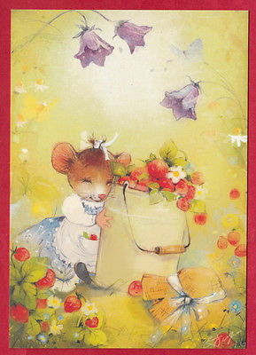 Mouse collects strawberries artist Babok