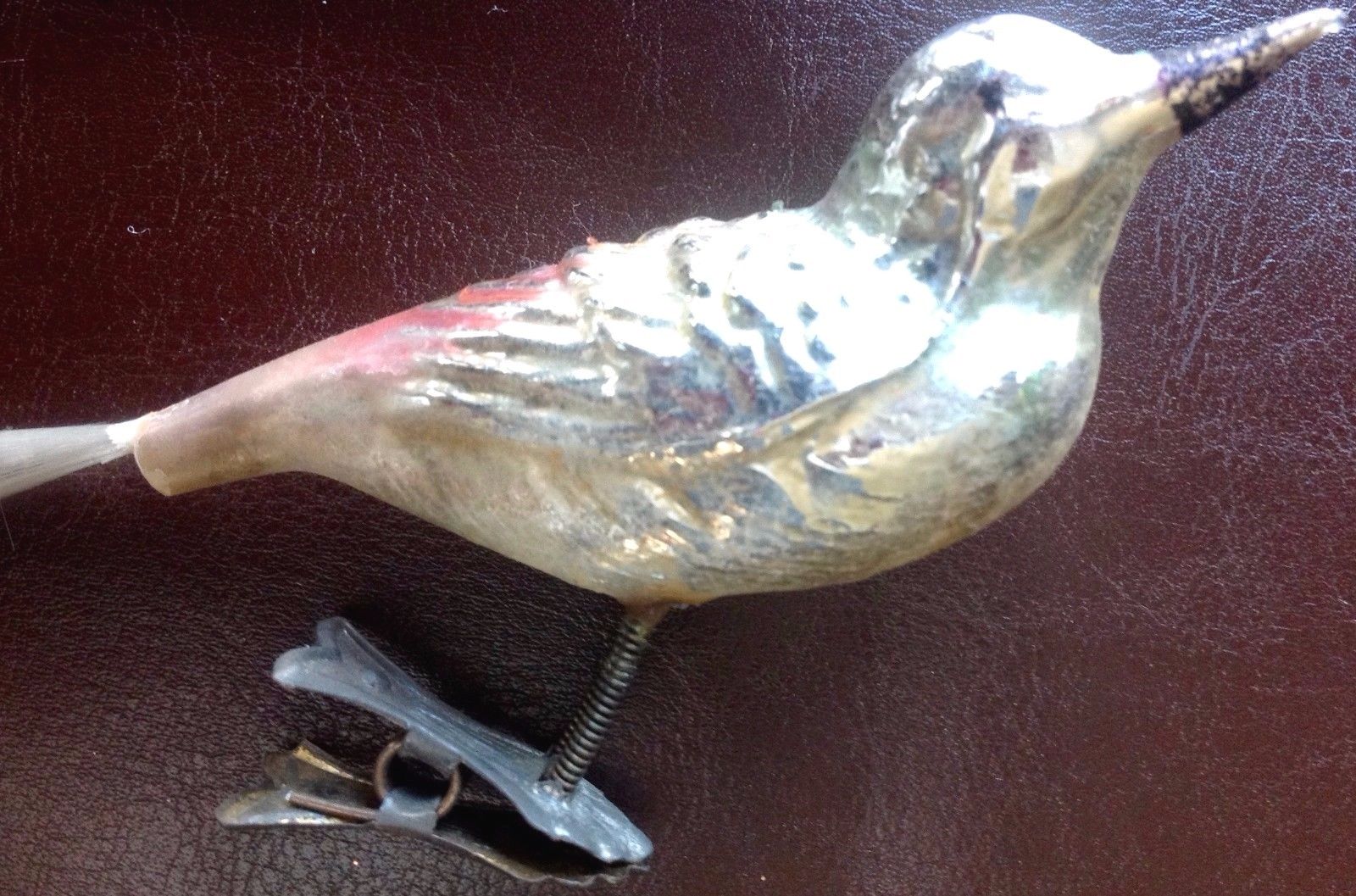 VTG/Antique Blown Mercury Glass Figural Embossed Clip-on Bird (3") Ornament Nice