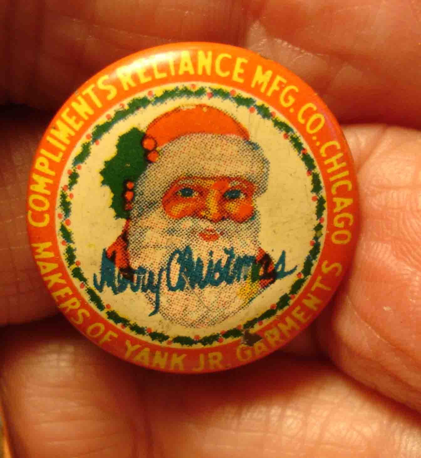 Title (ebay affiliate link): Old Adv.Santa Clause Pinback Button Merry Christmas,Yank Jr.Garments