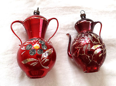 Title (ebay affiliate link): 2 ANNEALED GLASS XMAS ORNAMENTS, VASE & TEAPOT, GERMAN, 1920s