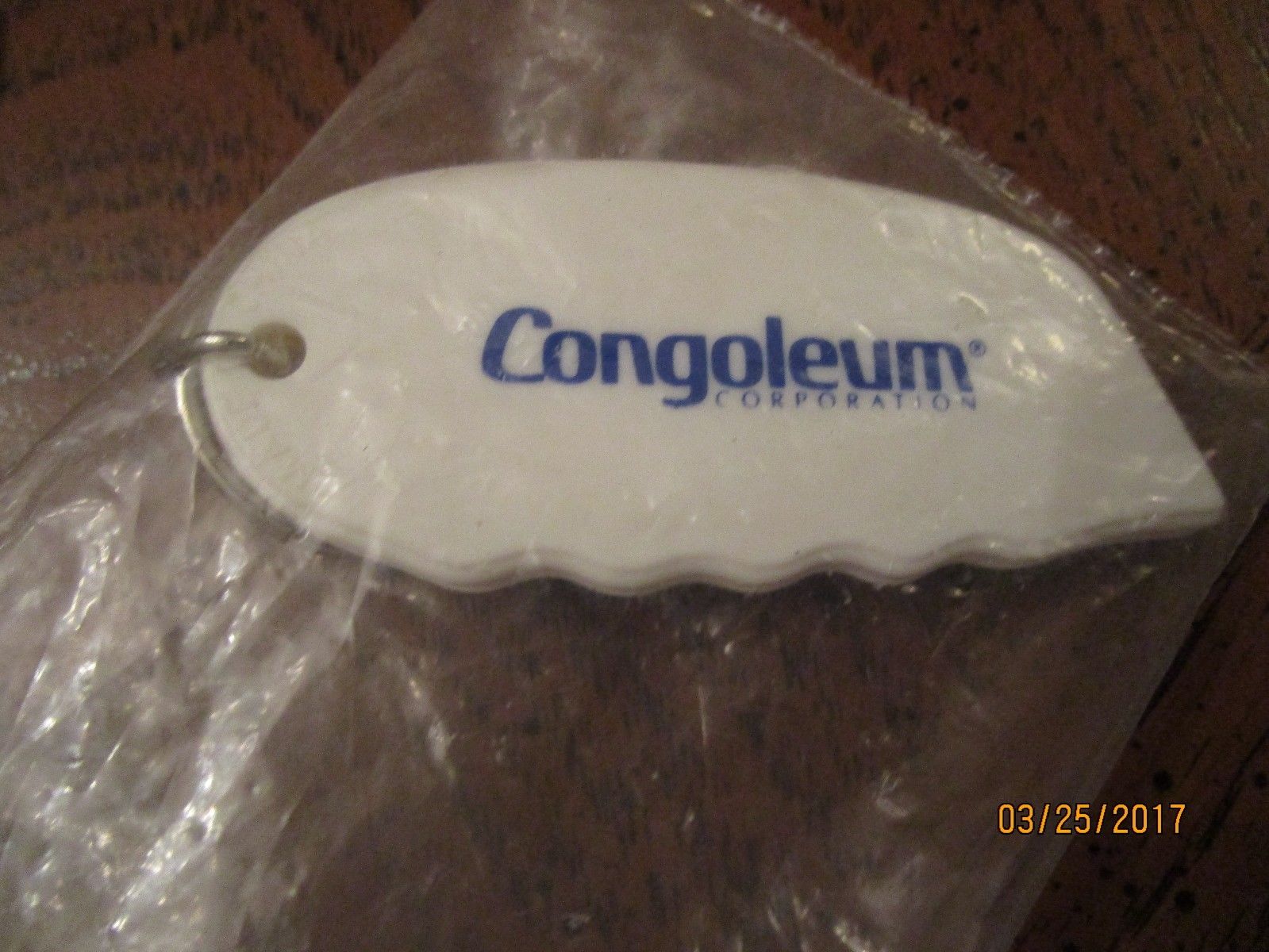 Vintage CONGOLEUM CORPORATION BOX CUTTER NEW IN PACKAGE KEYCHAIN wow WHITE BLUE