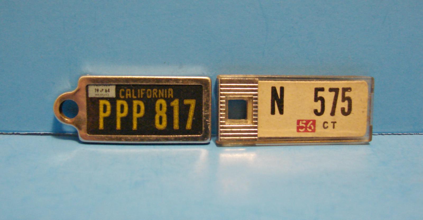 (2) Vintage DAV mini license plate keychain tags California & Connecticut