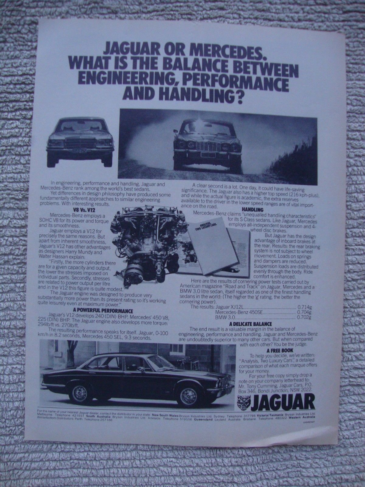 1976 Jaguar V12 Saloon Vs V8 Aussie Original Magazine Advertisement