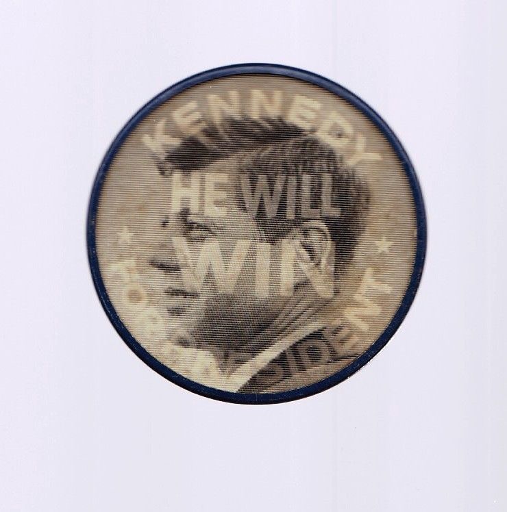 Title (ebay affiliate link): JFK Kennedy He Will Win For President Flasher Pictorial Productions Pinback