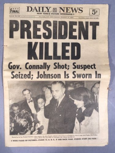 Title (ebay affiliate link): 1963 New York Daily News November 23 JFK President Killed