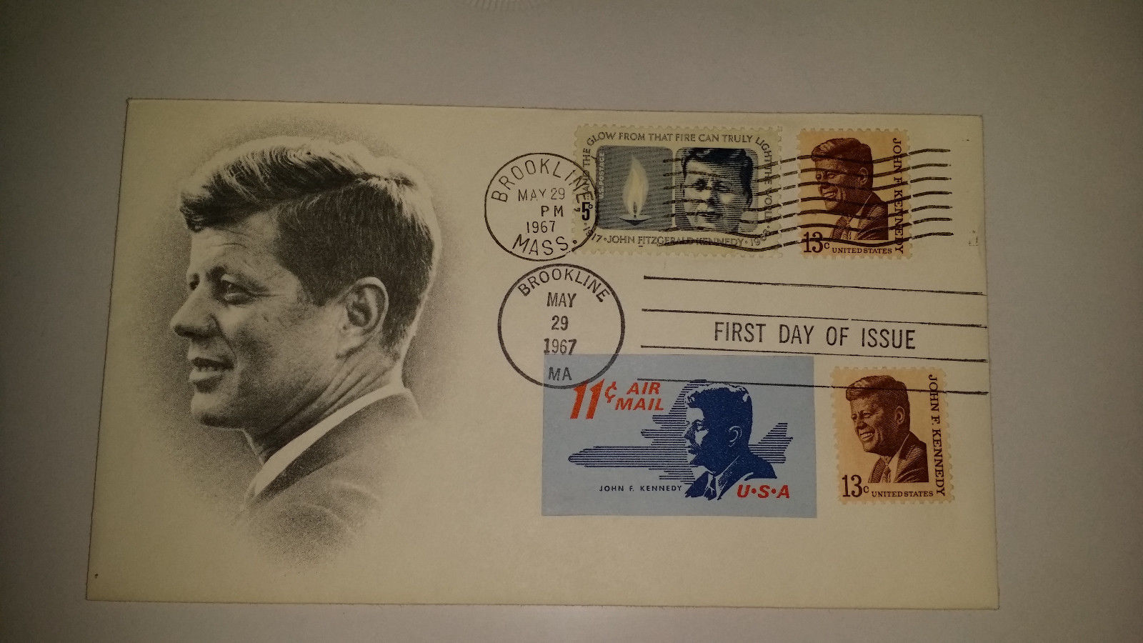Original JFK Multi Stamped Memorial First Day Cover FDC Brookline 5/29/67