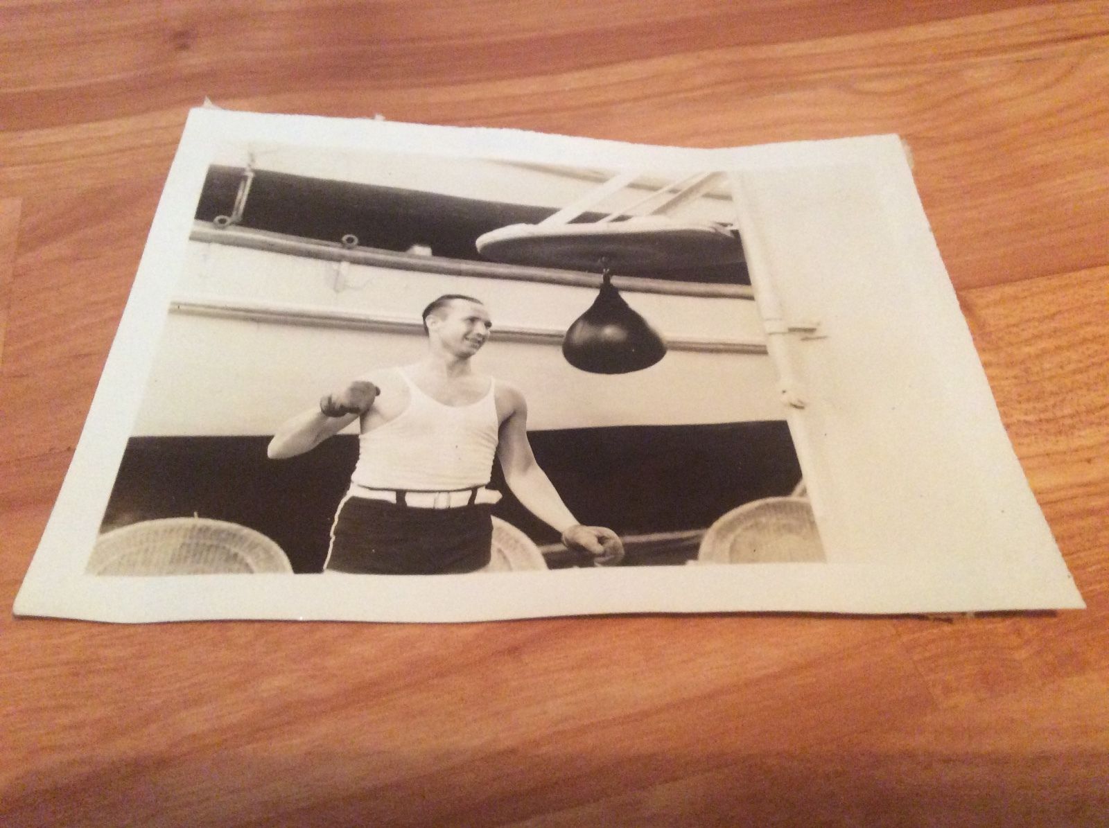 1933 photo Washington Rep M A Zioncheck w/punching bag on USS Henderson 4x5