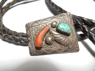 Antique Turquoise Coral Bolo Tie Old Cord Fancy Traditional Design