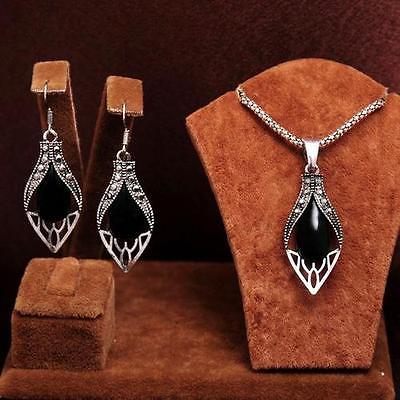 Title (ebay affiliate link): 2PCS black bead Design antique silver Necklace eardrop Jewelry Set Women''s gift