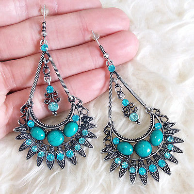 Title (ebay affiliate link): Womens Vintage Antique Color Blue Rheinstones Bead Dangle Drop Hookie Earrings