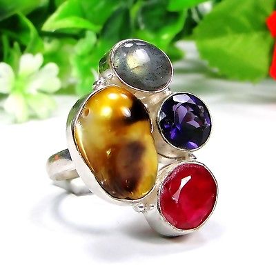 Title (ebay affiliate link): Multi Gemstone & 925 Silver Handmade Antique Ring Size 8 I120-36179