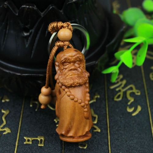 Title (ebay affiliate link): Dharma Patriarch Bodhidharma Statue Chinese Wood 3D Carving Pendant Key Chain