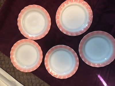 Title (ebay affiliate link): 5 Vintage Hazel Atlas Milk Glass Pink Crinoline Ripple Lunch Plates 9"