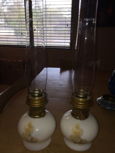 Title (ebay affiliate link): Pair Vintage Aladdin Milk Glass Daisy Wheat Globe Oil Lamp #23 Burner Nice!!