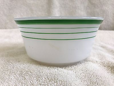 Small Vintage Milk Glass Cereal/Fruit Bowl With Green Stripes