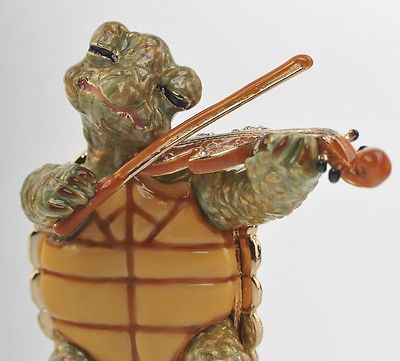 Title (ebay affiliate link): Turtle playing Violin Trinket Box by Keren Kopal Faberge Egg Austrian Crystal