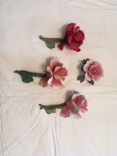 Title (ebay affiliate link): Capodimonte Made In Italy. Flower On Leaves. Set Of Four. Good Condition.