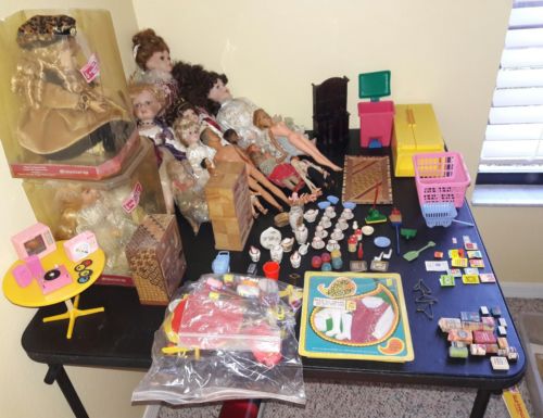 Title (ebay affiliate link): Huge 40s-80s Vintage Doll House Miniatures Lot, Paper Dolls, Activity Books, etc