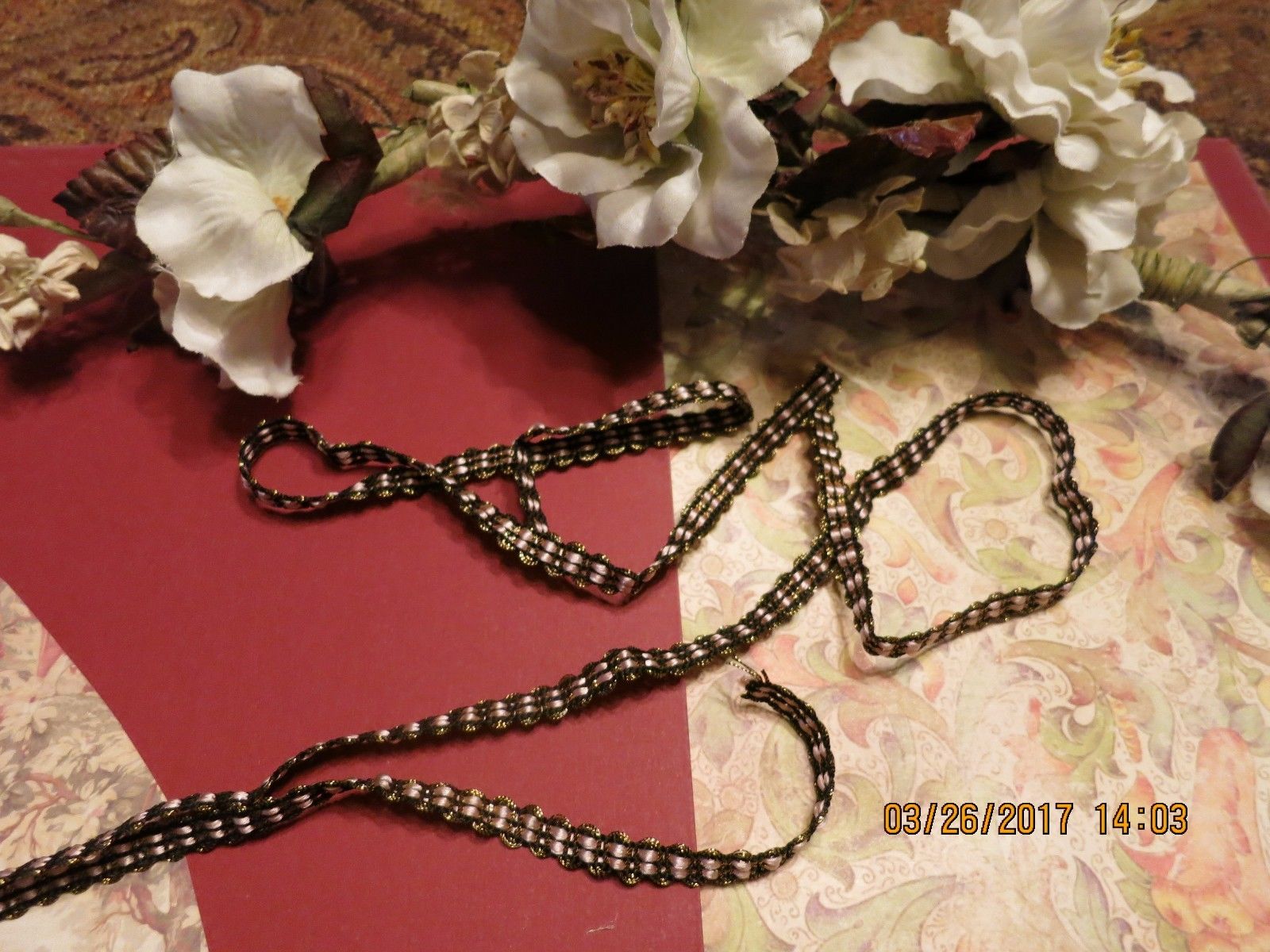 Title (ebay affiliate link): VINTAGE PASSMENTERIE SILK METALLIC MIGNONETTE SMALLER DOLL BOX ART TRIM 42"M4